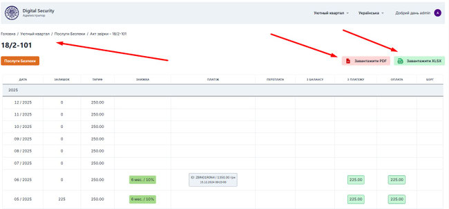 Доступ для охорони – співробітники можуть завантажити акти звірки для контролю заборгованостей.